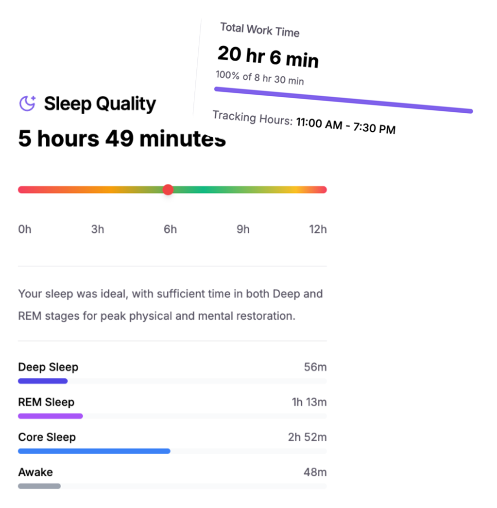 Other tools expect you to work on their schedule. Focuzed is different. By syncing with your wearable, it learns your natural highs and lows, when you’re sharp, and when you need rest. Instead of pushing you to grind when you’re drained, it helps you save deep work for peak energy and lighter tasks for slower moments.